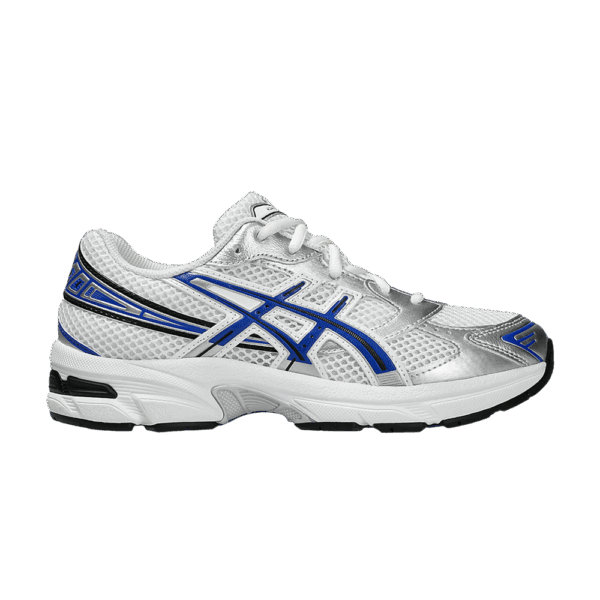 Experience comfort and style with the ASICS Gel-1130 in White and Blue. Designed for young athletes, this shoe features GEL cushioning for superior shock absorption, a breathable mesh upper for ventilation, and a durable outsole for traction. Perfect for everyday wear or sports activities.